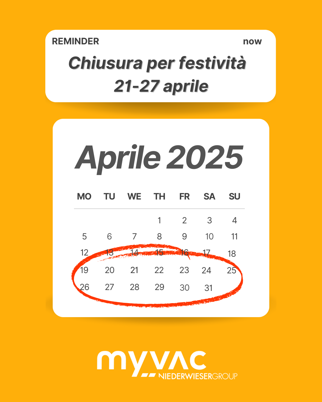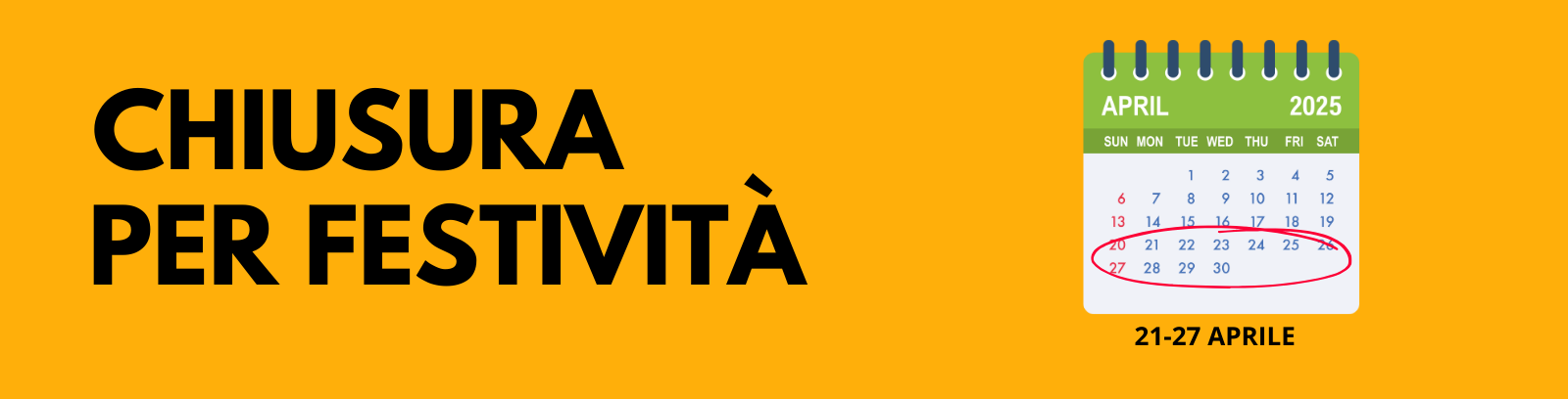 Storia per comunicare la chiusura aziendale durante il periodo 21-27 aprile