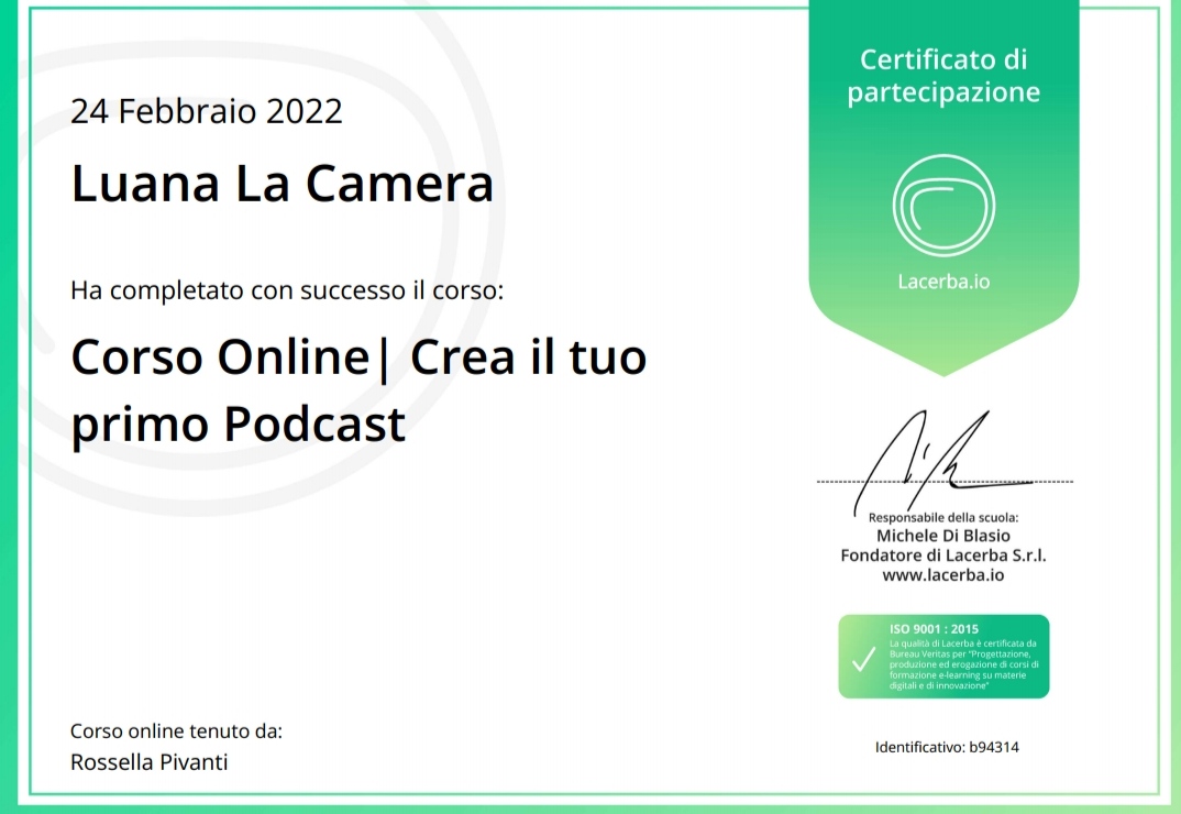 Certificazione Crea il tuo primo Podcast Lacerba febbraio 2022