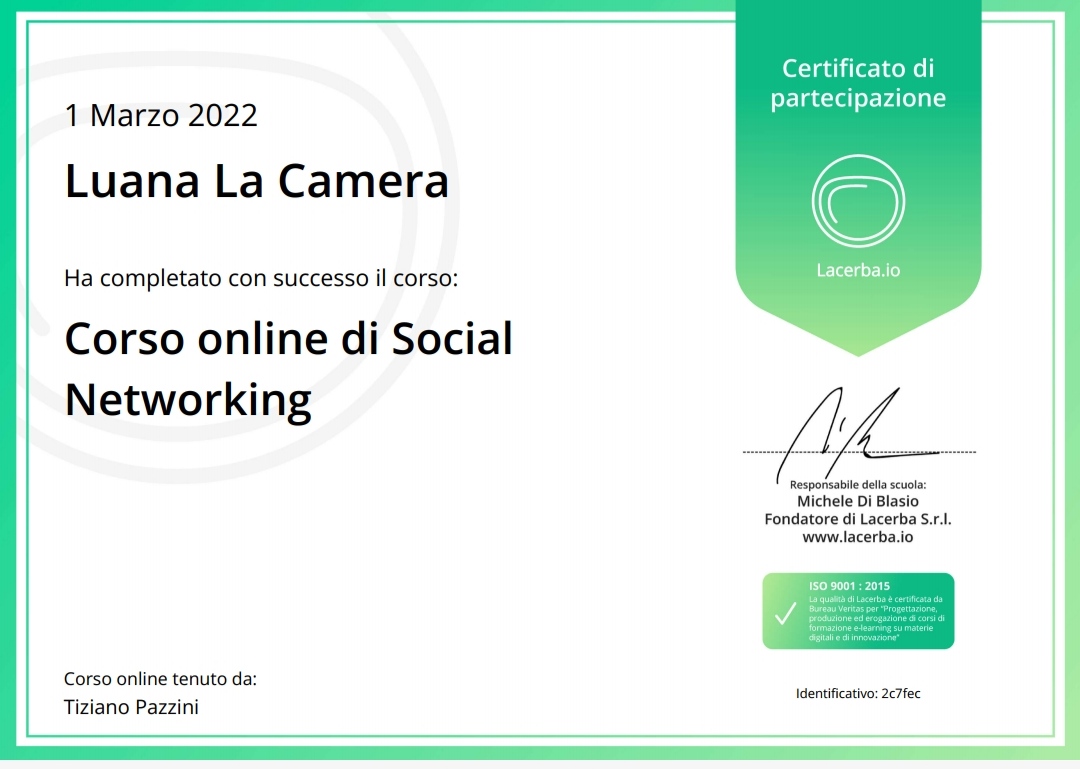 Certificato Social Networking Lacerba Laurea Magistrale in Scienze Politiche Target Discovery