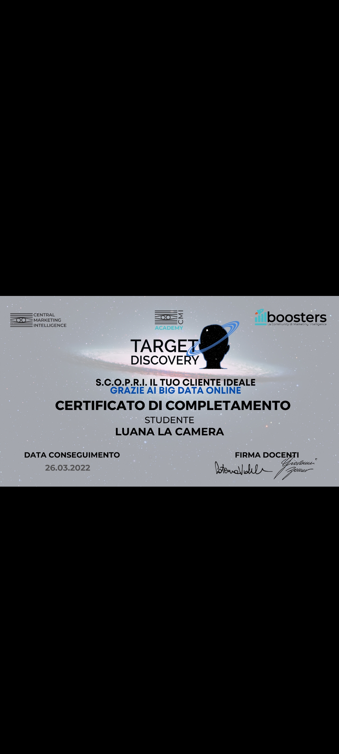 Certificato Target Discovery Booster marzo 2022