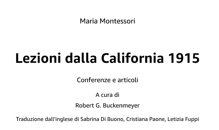 Traduzione dall’inglese all’italiano del volume “Maria Montessori: Lezioni dalla California 1915: Conferenze e articoli” 2023