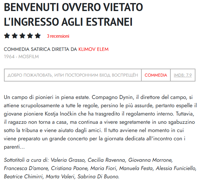 Traduzione e sottotitolaggio dal russo all’italiano del film “Benvenuti ovvero vietato l’ingresso agli estranei” per il sito perestroika.it 2024