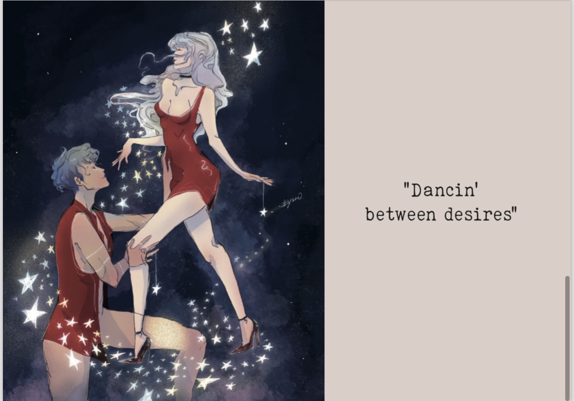 dancin' between desires - illustrazione editoriale