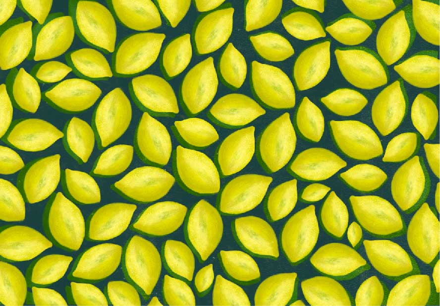 Illustrazione stile pattern illustrata in digitale per una rivista a tema agrumi.