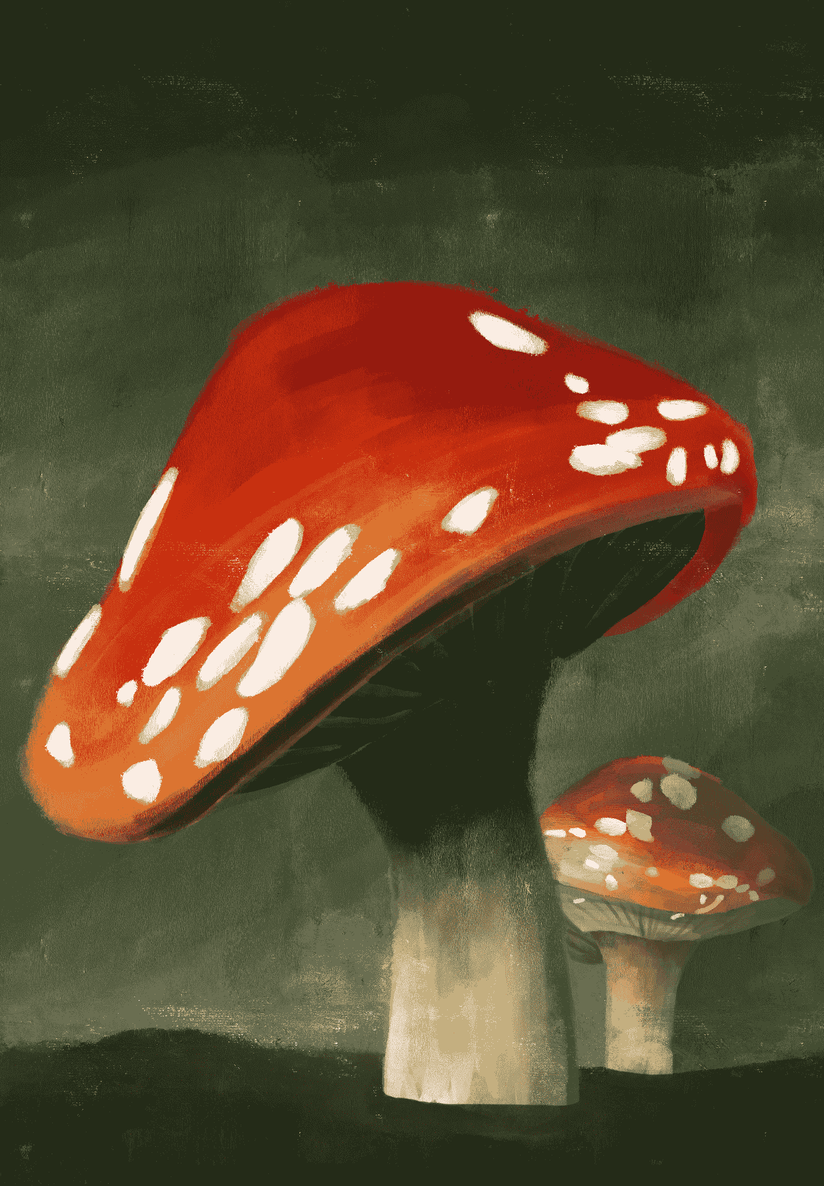 Illustrazione digitale di un fungo per il paragrafo di una rivista a tema.