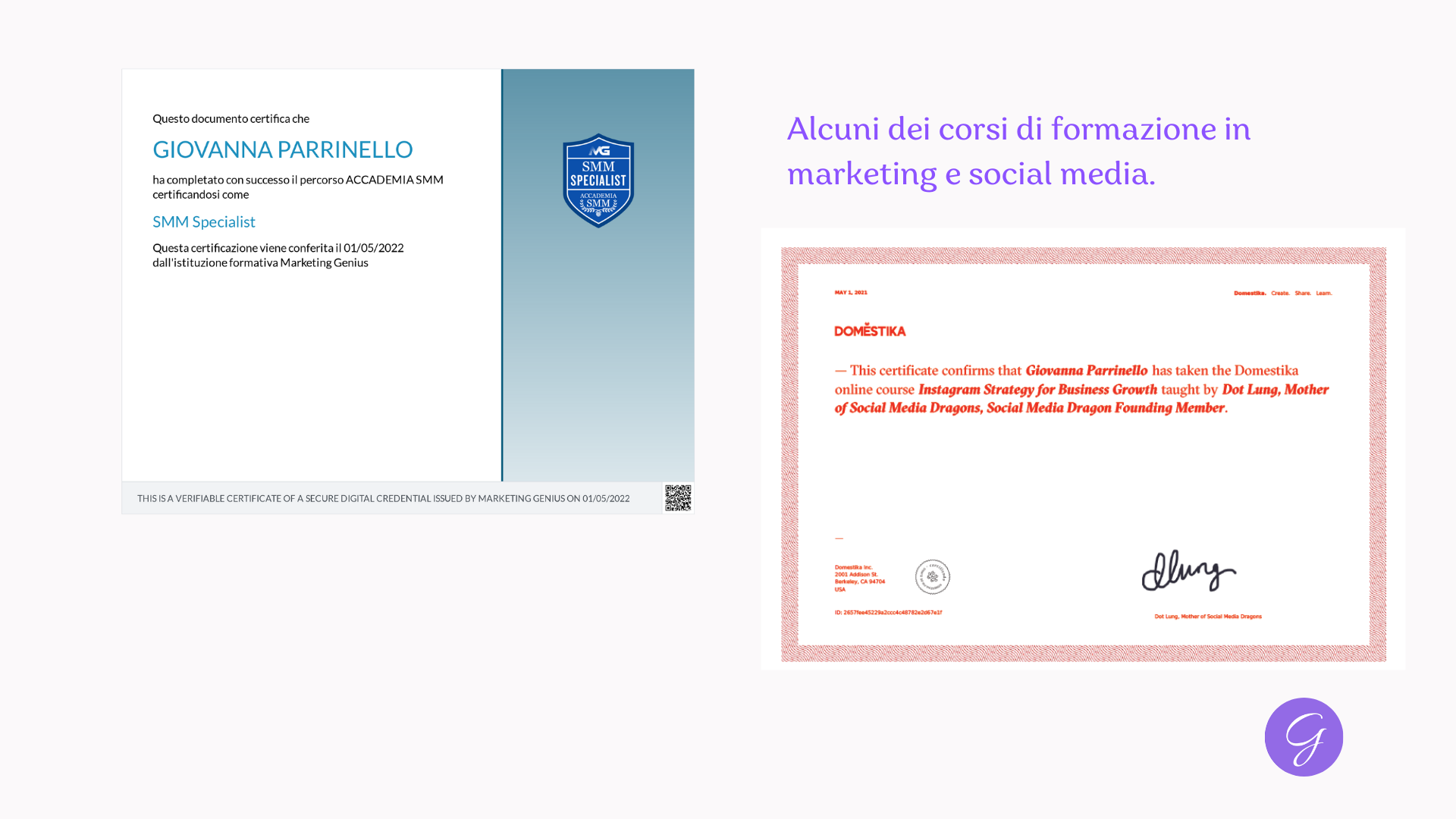 Alcune delle mi certificazioni. Ho fatto decine di corsi sul marketing ma solo queste hanno rilasciato certificazioni.