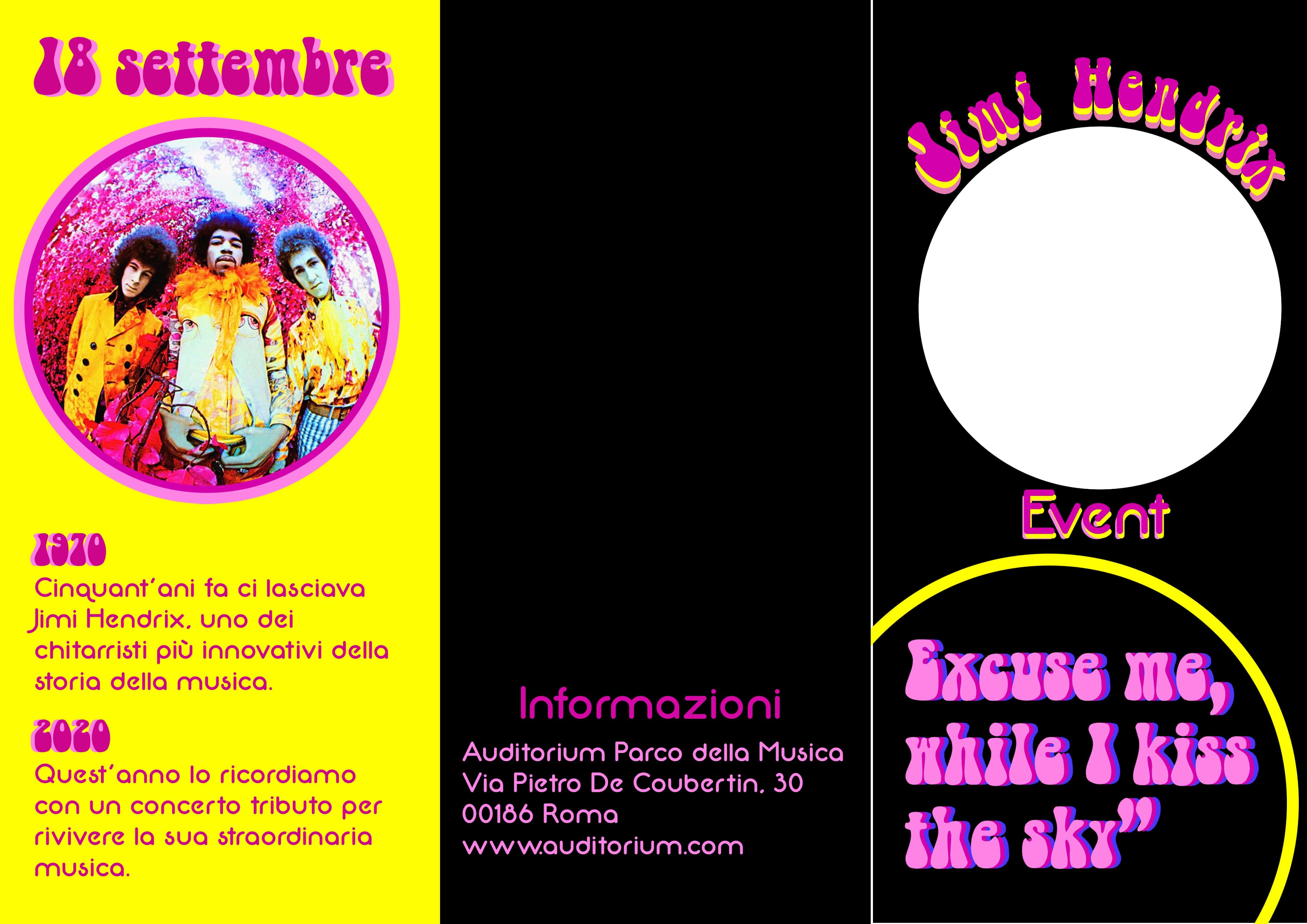 Esempio di depliant per un evento dedicato alla musica, (fronte, chiuso).