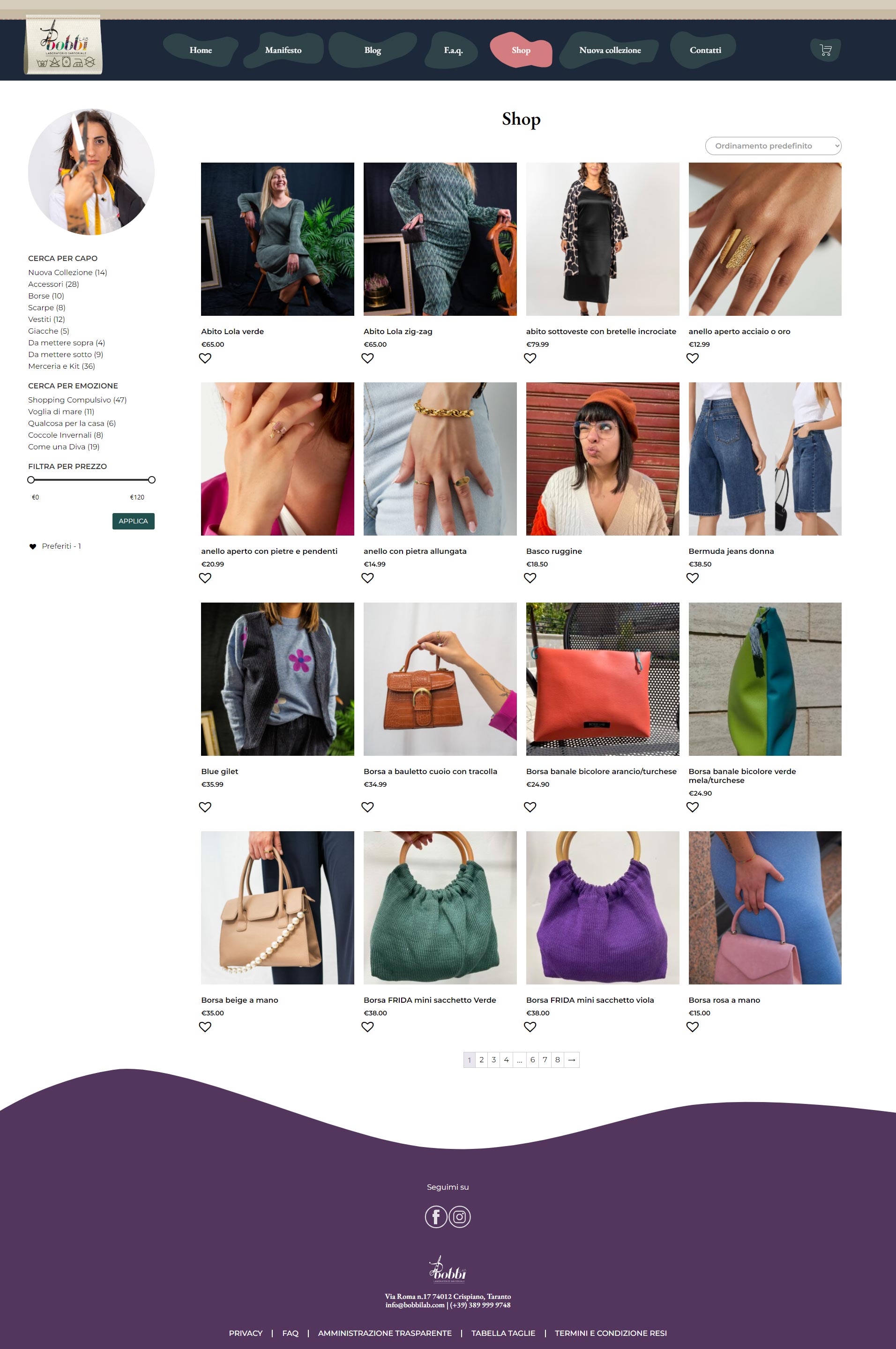 Concept e Sviluppo E-commerce per bobbilab https://www.bobbilab.com/shop/