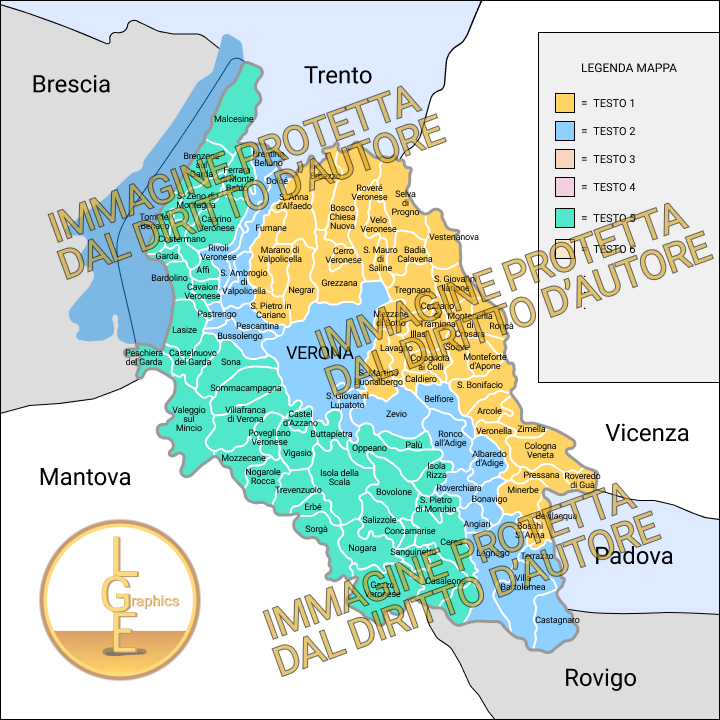 Esempio di mappa provincia di VR personalizzabile (comuni colorabili in base al tipo di raggruppamento richiesto dal cliente, ecc.)