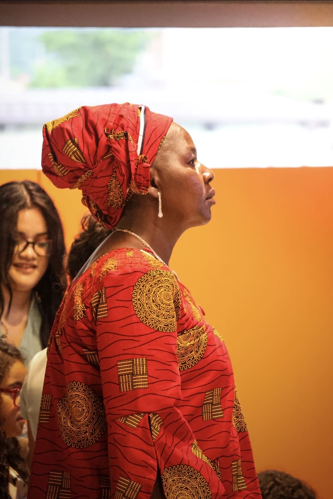Lo scatto ritrae con intensità e rispetto una donna avvolta in un abito tradizionale africano, ricco di colori e significato. La composizione curata, la luce calda e il fuoco selettivo es ..