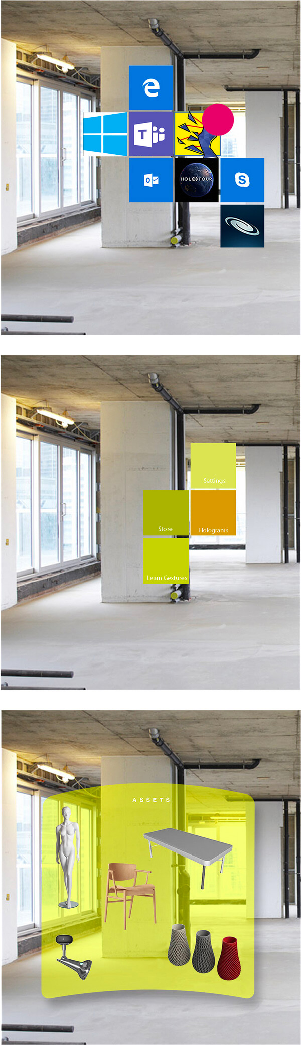 Studio UI per un'applicazione sviluppata in collaborazione con Microsoft per le tecnologie di virtual e mixed reality.
