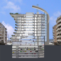 Rendering | Spaccato prospettico di un edificio multipiano ad Atene