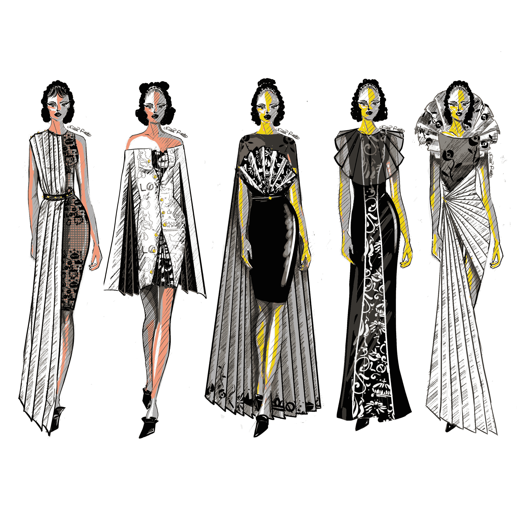 Alcuni bozzetti interamente realizzati da me in digitale per il mio progetto d’esame di “Fashion design per l’impresa”.