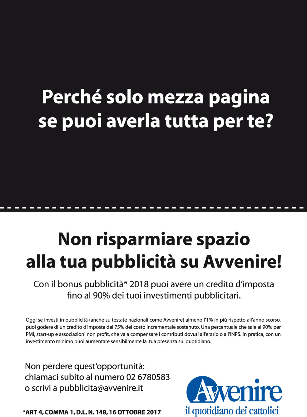 Sono un copywriter con 30 anni di esperienza prima in agenzia e oggi come freelance. Ho lavorato fra gli altri per Il Sole 24 Ore Mondadori, Avvenire, Rasbank, Assimpredil, Lega del Filo d'Oro. Posso occuparmi della tua comunicazione a 360°: annunci, direct mail, email marketing, testi per sito, brochure... Creatività e strategia per offrirti solo contenuti rilevanti per le esigenze del tuo brand.