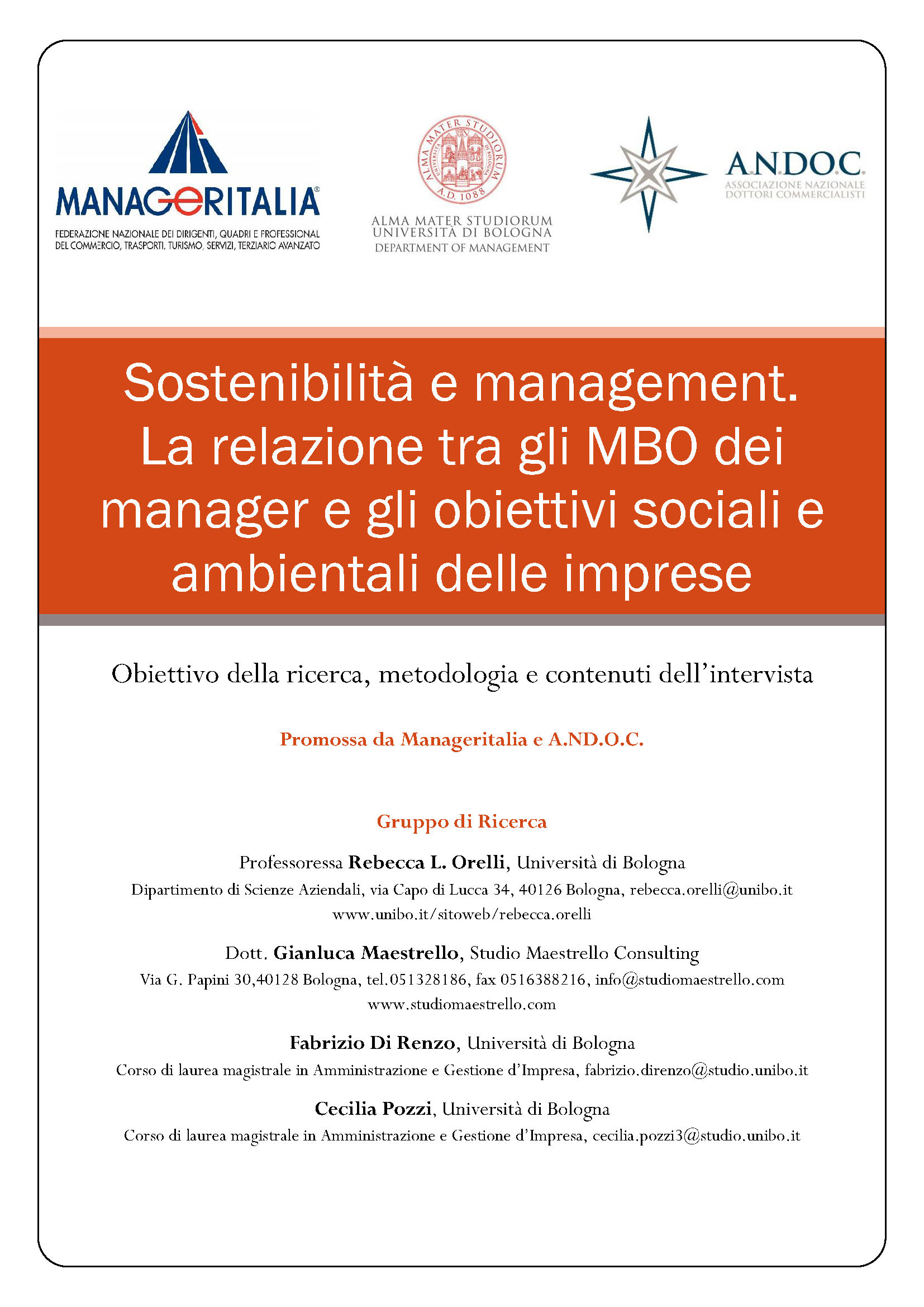 RICERCA SUGLI MBO DEI MANAGER E GI OBIETTIVI DI SOSTENIBILITA'. PROGETTO IN COLLABORAZIONE CON UNIVERSITA' DI BOLOGNA