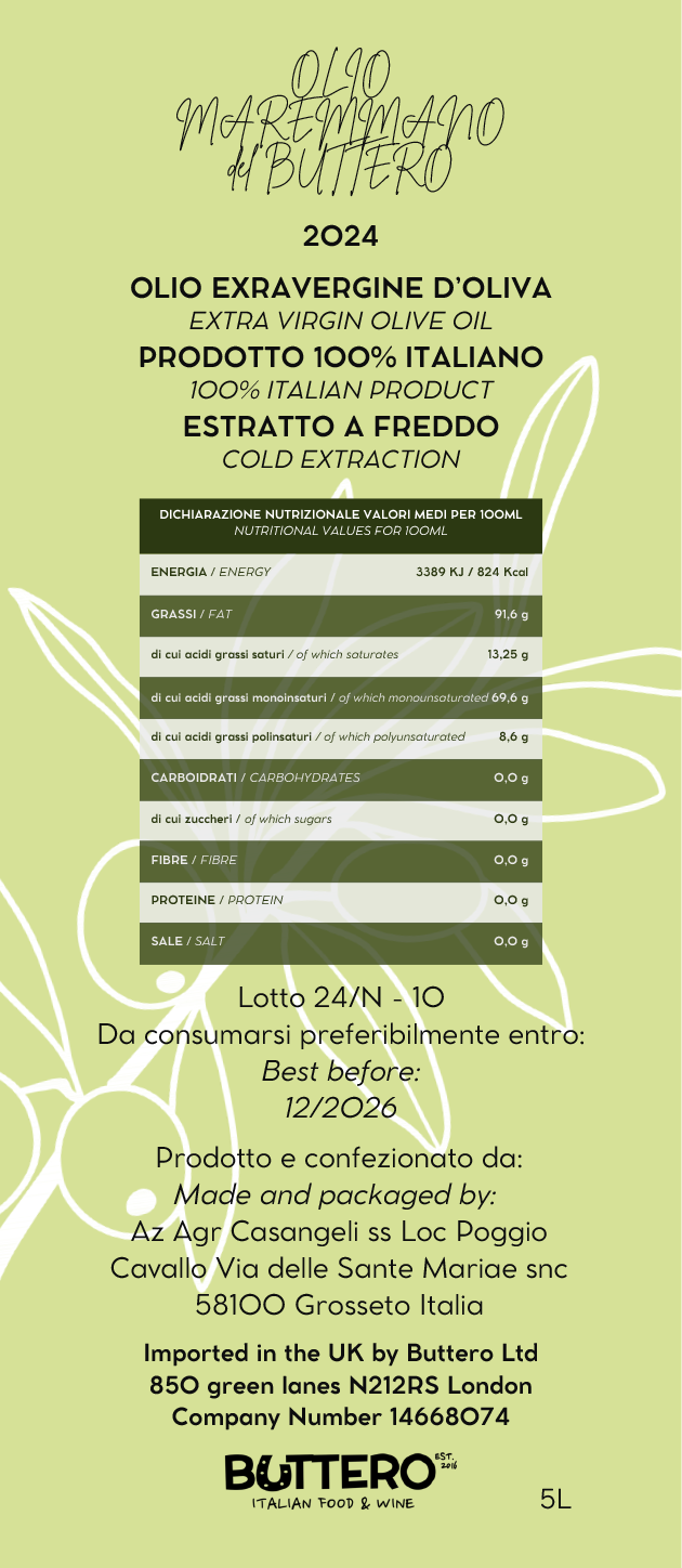 Etichetta back "Olio Maremmano del Buttero"