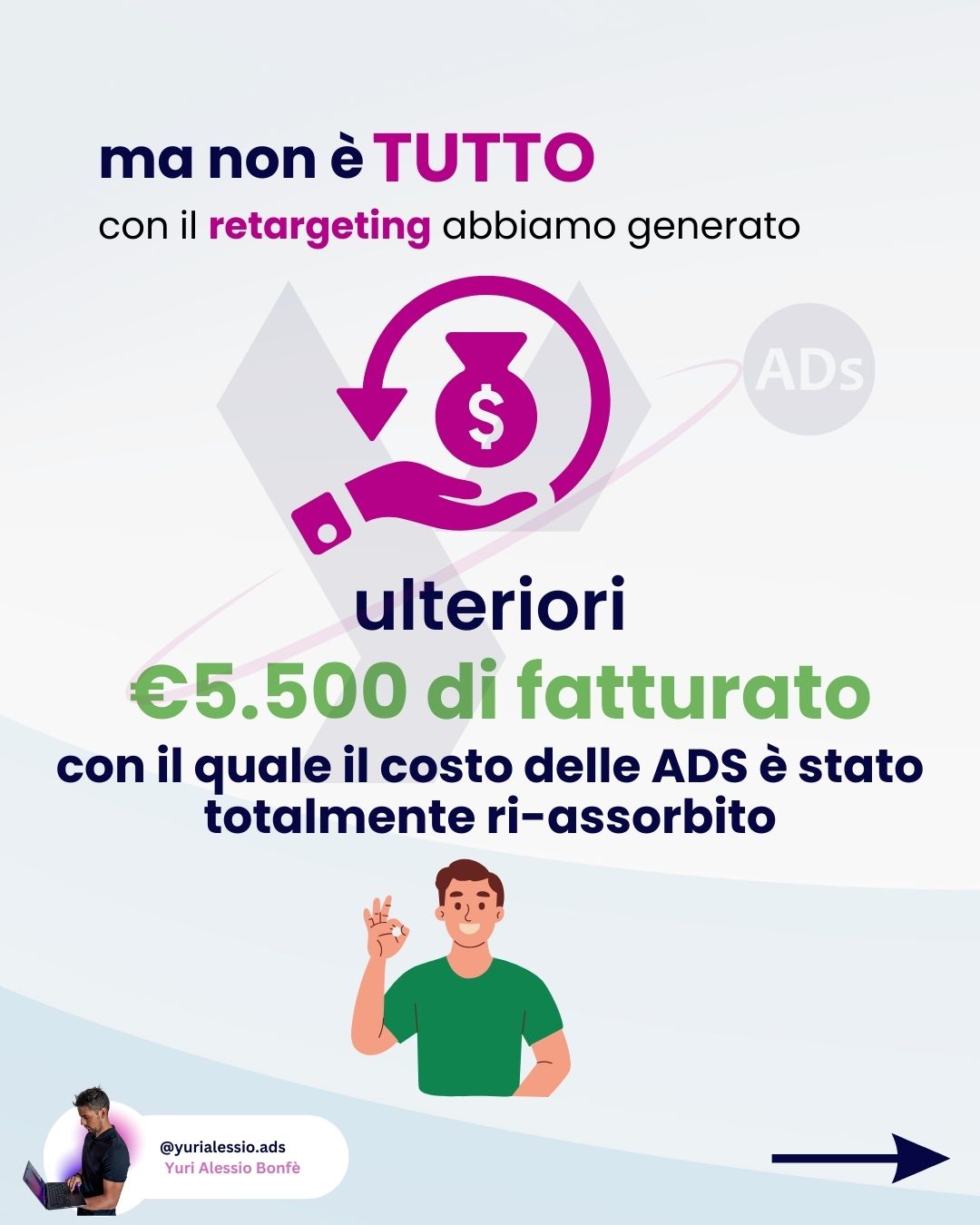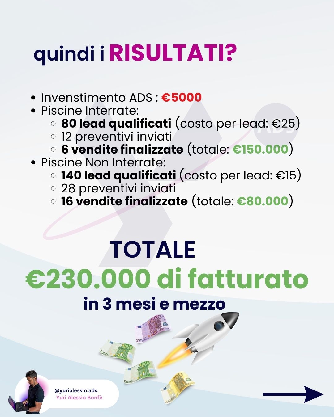 Immagina di vedere risultati concreti e duraturi. Di avere un professionista al tuo fianco che ti tiene aggiornato, ti supporta e ottimizza ogni aspetto delle tue campagne, dandoti anche una guida pratica nel mondo del marketing digitale.